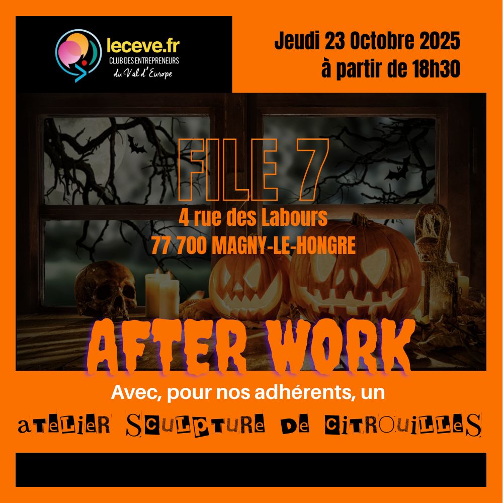AFTERWORK SPÉCIAL HALLOWEEN – CEVE Cette année, notre Afterwork se transforme et prend des couleurs d’Halloween ! Jeudi 23 octobre à 18h30 FILE 7 – Magny-le-Hongre Thématique de la soirée : Noir & Blanc… avec une touche au choix de violet, d’orange ou de vert ! L’occasion de jouer le jeu tout en gardant votre style d’entrepreneur […]